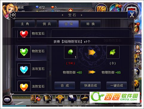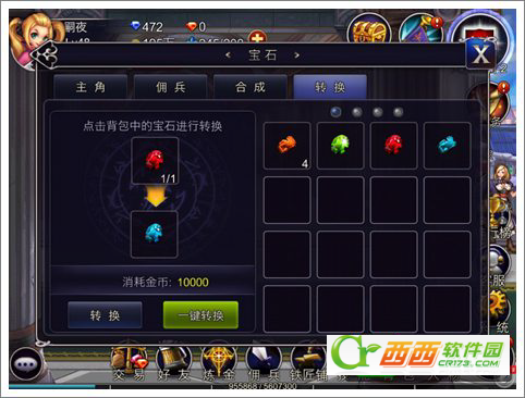 如果我们身为魔法师,身上却有好多增加物攻的宝石怎么办?没关系,英雄之剑还有很贴心的宝石转换功能。我们可以将法系宝石转换成为物系宝石,例如将物攻转换为法攻,法防转换成物防,非常实用的功能。