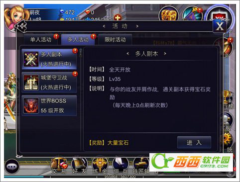 说了那么多,重点来了,我们去哪里获取宝石呢?有两个常用的地方,一个是精灵宝藏,在精灵宝藏内有概率获得宝石。二是多人副本,多人副本通过后能获得大量的宝石,每天的挑战机会大家别错过了。