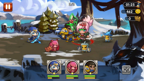 进入关卡好,首先要选择适合对付该关卡中敌人技能的英雄进入战斗!虽然目前我们只有3位英雄,但是随着故事的发展,将会有越来越多的英雄加入我们。