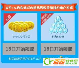 3、8月14日在游戏内购买萌装的用户在8月18-8月20号期间来此页面,可领取得1~100Q币不等,预约用户可额外获得2088积分。