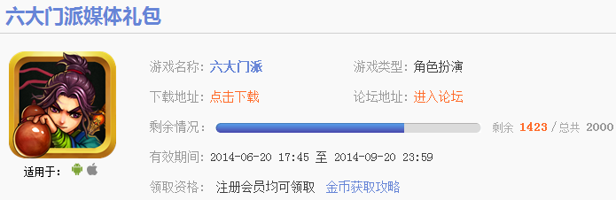 领取地址http://iwan.baidu.com/Mobilegame/giftDetail?giftid=6705