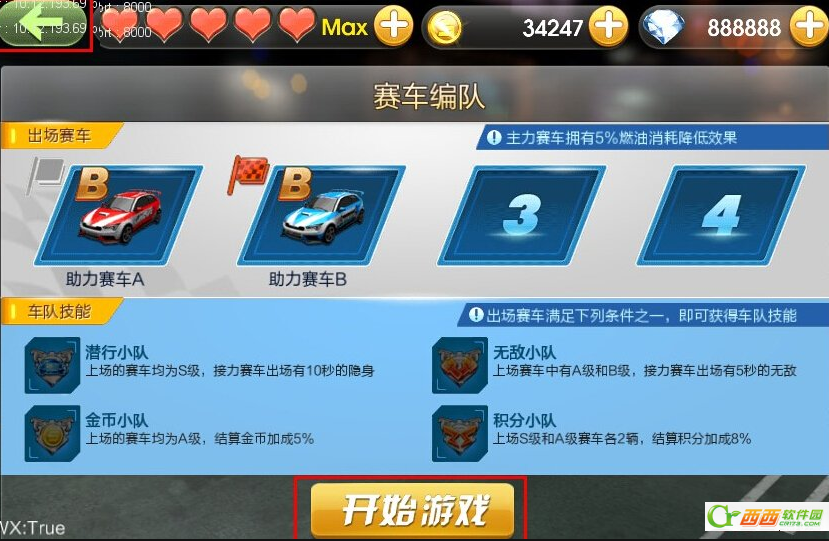 潜行小队:上场的赛车均为s车,每辆赛车出场有8秒的隐身。