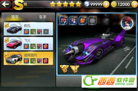 2、赛车图鉴更加直观,特别是新版本即将要出的5颗星的“蝙蝠侠战车”更是酷炫。而且还会爆出两辆新车“飞火”“超级旋风”