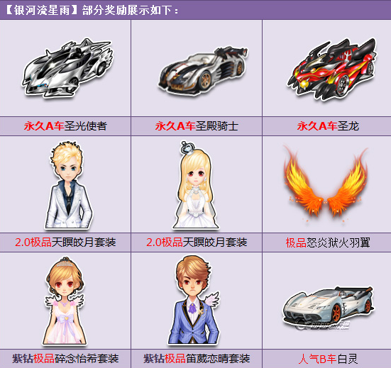 有机会获得永久A车、极品套装、极品背饰或其他奖励之一。