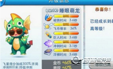 技能:飞星得分加成300%,开局冲刺800米,终极冲刺。