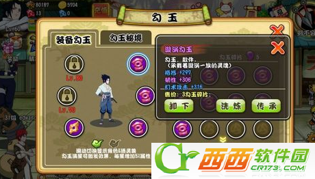 顺利通关勾玉秘境之后,就可以获得勾玉奖励,例如:漩涡勾玉、宇智波勾玉、自来也结界勾玉等等,每种勾玉的属性都不一样,玩家可以根据角色属性需求镶嵌上勾玉。