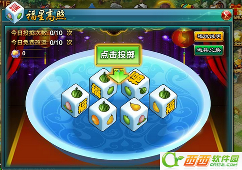 接下来说福源的投掷技巧和计分方法,在筛子的图案中有福字,分数字高,6个筛子3个福字福源可以过千。还有西瓜。橙子、梨、桃子 、苹果之类的水果图案,当你投掷时同样花色的水果图案桃子和西瓜越多福源也会越高,但比福字差得很远,具体的分数有待考证。