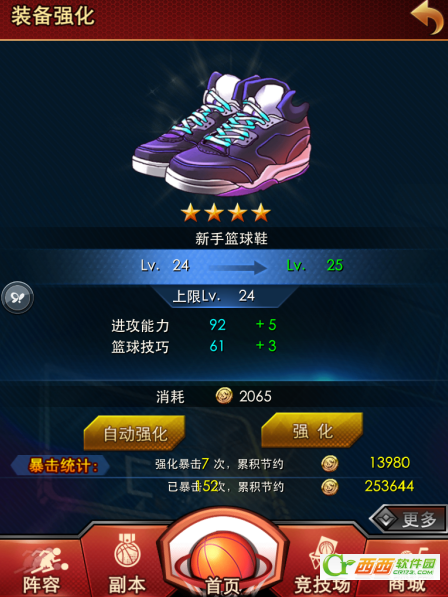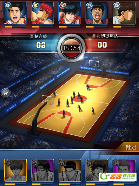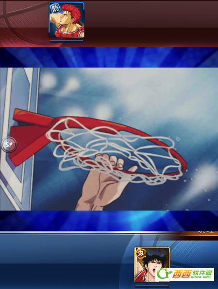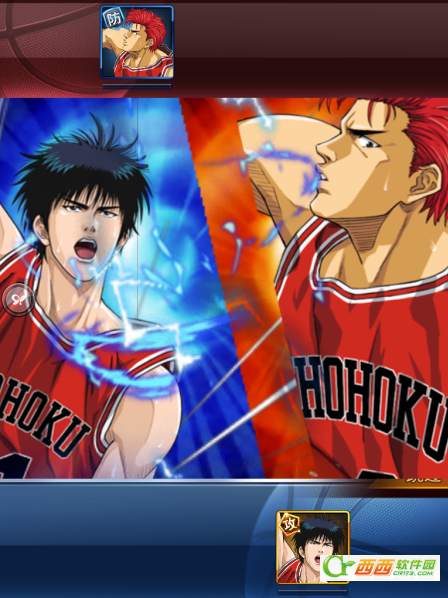 战斗的表现形式,有些像1V1。双方5名球员依次闪现,轮换进攻防守,当技能成功的时候会用一段该角色在TV动画中的镜头来表示,例如藤真的上篮、樱木的盖帽。PVE里还加入了手动操作,在对方攻击属性球员激活“暴风上篮”之类技能的时候,有3秒钟时间可以选择己方的防属球员进行拦截;己方队员若想发动攻击技,也是要点击球员头像。另外,无论进攻还是防守,都需要将怒气槽攒满方可触发技能;但竞技场的战斗全程自动发动技能。最后,所有的战斗都可以一键跳过直接看结果,无需充值即可使用——您还设置手动使用技能干嘛?