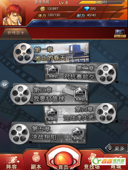 剧情副本每一场战斗开始前会有一段动画交代情节,但是无法快速跳过对话,如果不想点击快进箭头直接进入比赛的话,只能耐心等待慢吞吞的系统文字。不过剧情倒确实忠实地按照TV版发展,从失恋50次到单挑大猩猩,从小三要打篮球再到最后的决战翔阳,真能一直玩下去的话也算是重温了一遍非常不完整的TV版动画。就是每次开球投篮抢断反击都是同一个动画片段,很审美疲劳,不跳过比赛都对不起这个功能。
