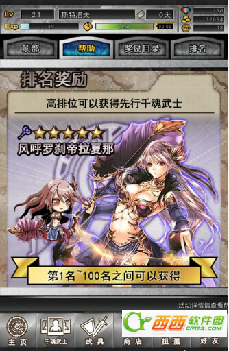 魔族和人类的战争已经进入到了白热化的程度,加鲁德首长国将发起一场名为“神之铁锤”的最终战役,力争一举将魔族驱逐!为此,万千英雄们聚集于加鲁德,击杀魔族敌人获得活动点数前一百名的玩家,将获得珍贵的五星千魂武士“呼风的罗刹帝拉莎娜”、S级武具天照扇、A级武具铁风扇和彩钻等奖励!