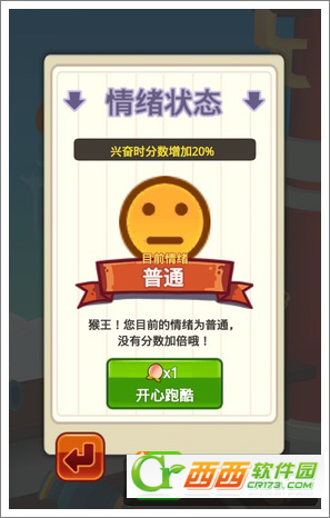 点击游戏主界面右上角的情绪图标可以查看当前猴王的心情,投食一个蟠桃就让它兴奋起来便可以获得分数20%的加成。