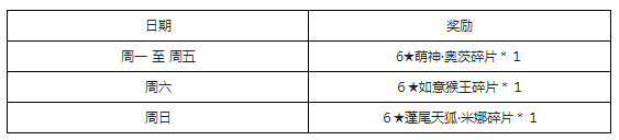 活动期间,玩家每天首次登录游戏,即可通过邮箱获得对应的一个6★伙伴碎片: