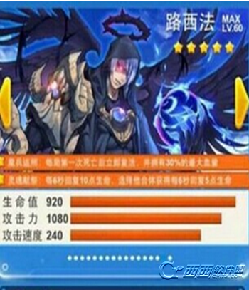 满级属性Lv60,攻击力1080,生命值920,攻击速度240