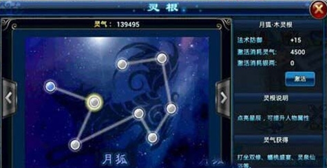 2)点亮星辰以参悟灵根,可提升人物的属性。