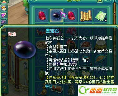黑宝石:增加速度8,作用于:腰带、鞋子