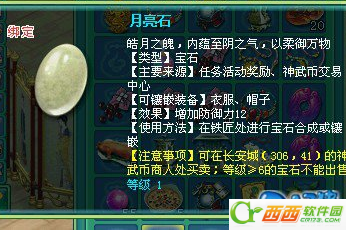 月亮石:增加防御力12,作用于:铠甲、头盔