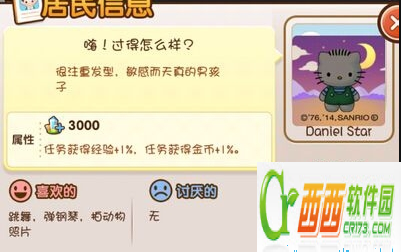 HelloKitty男朋友DanielStar繁荣度加3000,任务经验加成1%,金币加成1%。
