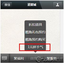 2. 点击道聚城微信菜单【微商店】>【1元拼手气】
