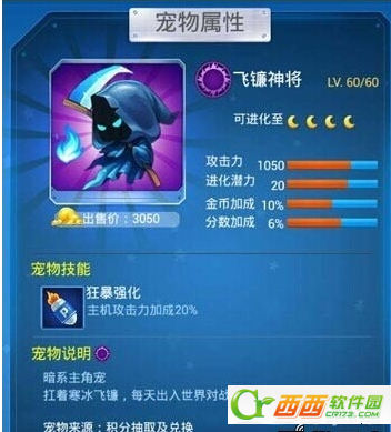 宠物技能:冰冻拳。击中敌机时候,有20%概率冰冻目标,持续2秒