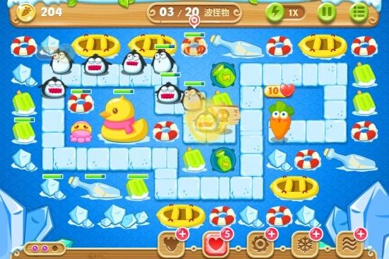 随着游戏的进行,可以安装章鱼塔加强攻击力,在拐角等关键位置安装升级便便塔等减速型炮塔,减缓怪物进攻,可消灭所有来袭怪物,获得道具全清、金萝卜和钻石全部成就。
