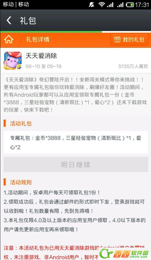 天天爱消除是集合了所有消除游戏的一款经典消除游戏,与同类型游戏想必,天天爱消除有着自己的特色和风格!最近,天天爱消除发放了应用宝专属礼包,那么,天天爱消除应用宝专属礼包怎么领取呢?天天爱消除应用宝专属礼包有什么奖励呢?下面,来看小编为大家带来的详细介绍!