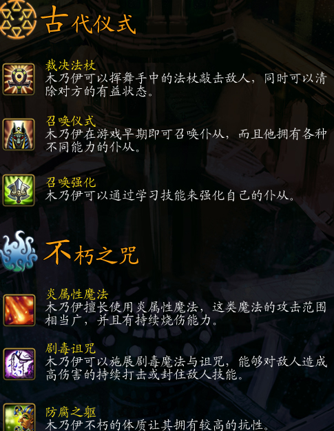 分析:召唤技能的选择根据具体的战斗而定,由于场上仆从数量不能大于1个,因此,一般来讲一场战斗只需要点一个你需要的三级仆从即可,除非你是打算手动去控制战斗,多余的技能点可分配到被动或者基础类技能。另外,由于主动技能全部是单体前1,因此,在小怪比较多的副本中,召唤仆从还是配合着“不朽之咒”系的技能释放会比较好一些。