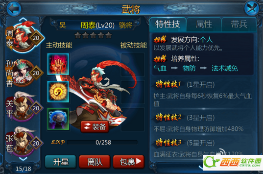 在《主公莫慌》中,武将的星级对于特性技能和武将能力的成长上限都起着至关重要的作用。周泰这名江东名将拥有“不屈”和“血满征衣”两项超强的保命技能,搭配“护主”的强力恢复技,将是肉盾定位的不二人选。而作为平民DPS的首选,张苞在没有更多逆天进攻型武将选择的情况下,往往会在战局之中为玩家带来意外的惊喜。