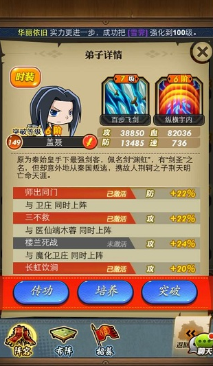 与罡星戒的“天罡”加20%血量、书籍刺客列传加20%攻击。