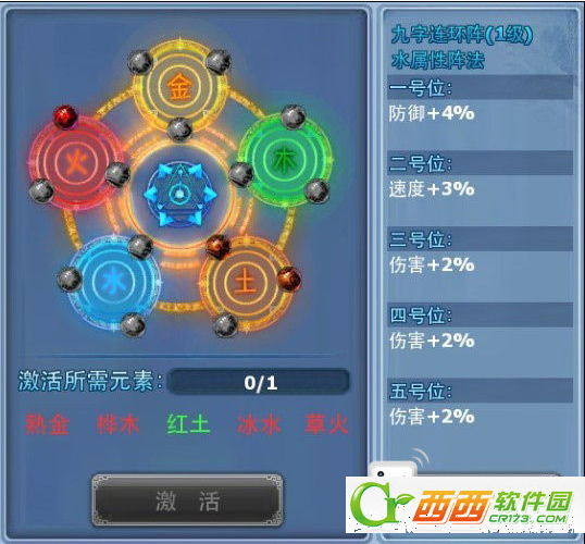 阵法激活所需元素:熟金、桦木、红土、冰水、草火。