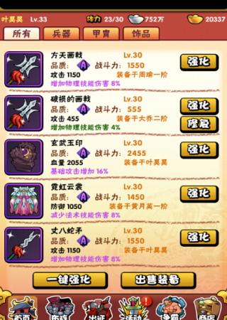暴漫群英传装备分为不同的品质等级,还可以通过强化来提升装备属性。