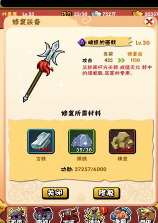 一些装备是残破的,可以通过材料来进行修复,获得完美版的装备。
