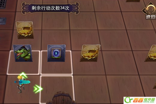 3、玩家初始将拥有35次的行动次数,每次可移动一格,同时扣除1次行动次数;