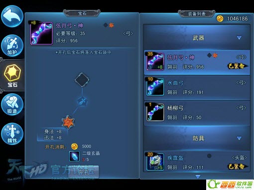 天下HD装备宝石镶嵌界面 :紫色装备开2孔镶嵌宝石