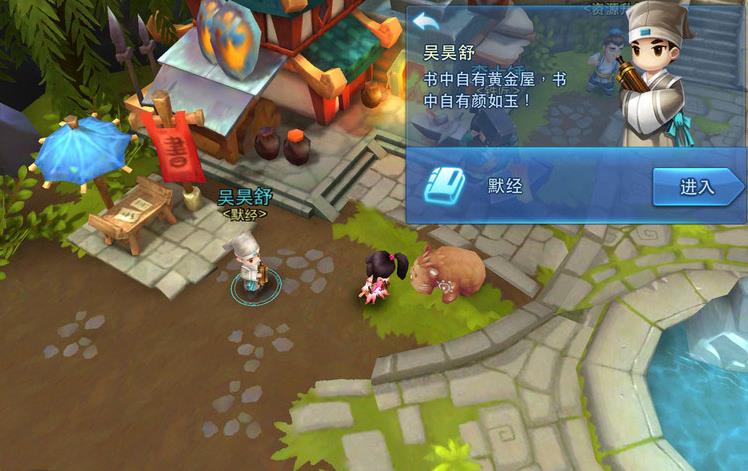 在家园里找到“吴昊舒”打开默经界面,在经书列表中选择一本经书进行研读。