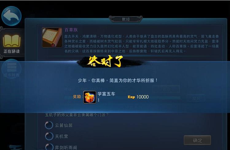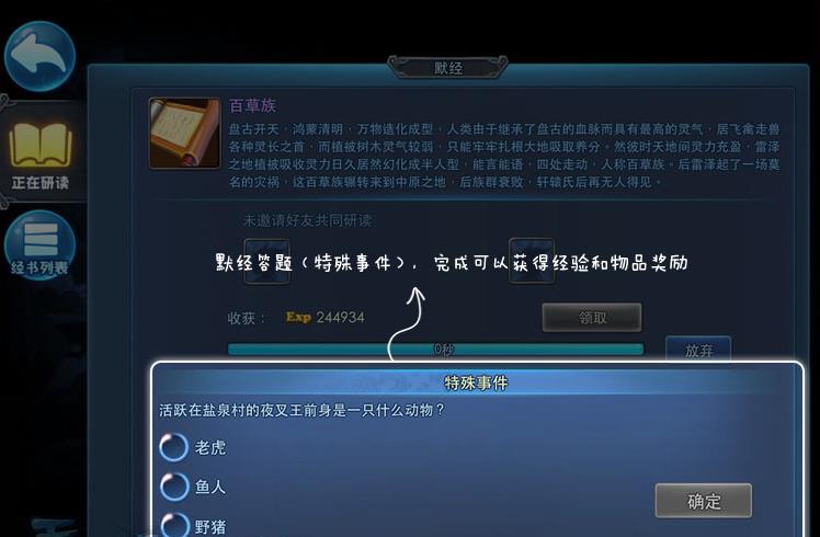研读过程中会随机出现特殊事件哦,主要是默经答题,如果不完成(答对答错都可以)是无法领取默经经验的。