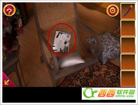 7.此时点击房间里的椅子,如图所指的位置,将椅子上的枕头移开,可以拿到一张破碎的画。