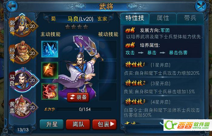 白眉:令士自身和麾下法师系士兵攻击伤害增加50%.