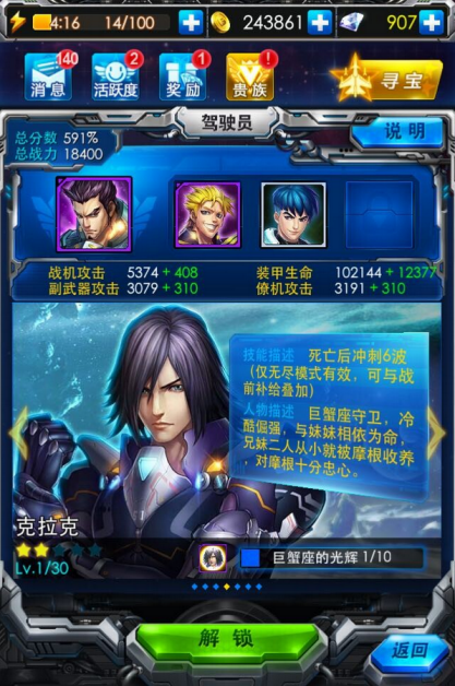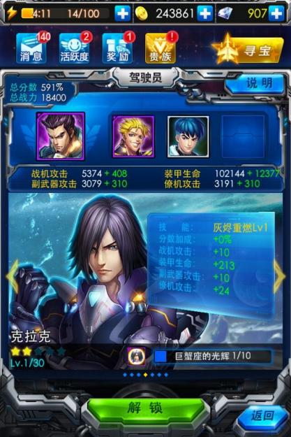 雷霆战机新驾驶员克拉克属于低属性驾驶员,想要获得它,我们必须拥有10个巨蟹座星座光辉。目前玩家可以通过以下途径获得巨蟹座星座光辉: