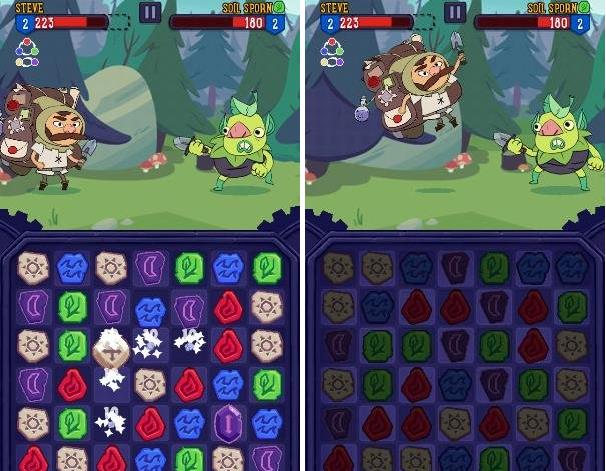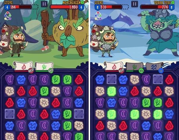 和其他三消游戏不同的是,符文的每次移动不一定要连接一个组合,所有你可以制定连击战略(但每当符文移动未产生组合时,敌人将免费获取一次攻击机会)。
