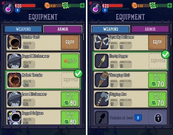 快递大叔在战斗中的战斗力虽然和消除方块的方式有关,但是和武器和防具也有很大的关系,快递哥每次升级都会自动解锁一些武器和防具,解锁的武器和防具你可以用金币购买,如果想用更厉害的道具就要用到邮票了,系统一张邮票也没送,所以这需要内购,你懂的!在游戏中每过一个关卡都可以获得金钱奖励!随着关卡难度的递增获得的钱也越多!