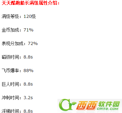 天天酷跑船长是积极那个在新版本中跟大家见面的新角色,据报料的信息来看,这个家伙刷分很有一套,可是保命能力太差了,距离跑不远,如果小伙伴们想拿距离来压人,还是不要入手这个坑货了,如果是刷分,那就是必备神器啊!至于如何让角色发挥出自己的优势,当然还要看宠物和坐骑的选择了。