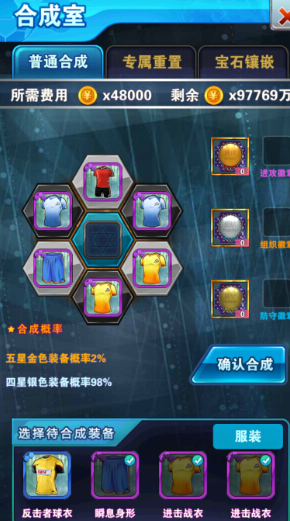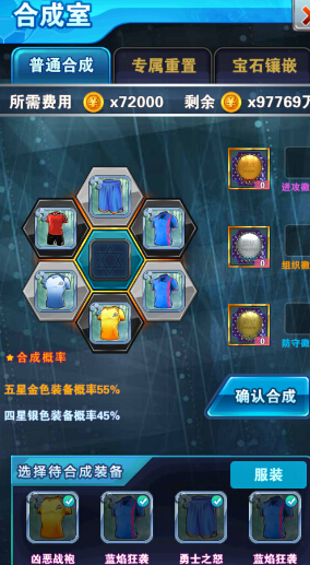 足球小将游戏中可以通过装备的合成来提升装备的品质。
