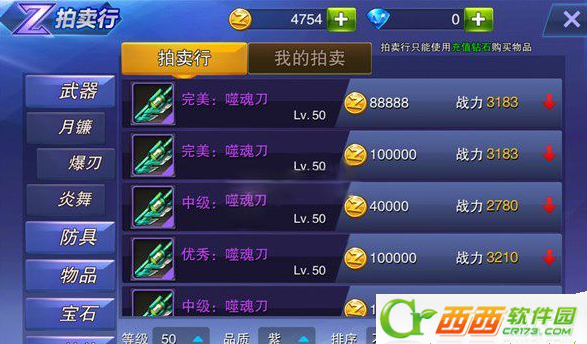 玩家可以在拍卖行寻找自己想要的装备或者出售自己想卖出的装备。