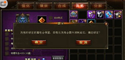 注意:洗练时锁定的属性会保留,但是每次洗炼时会额外消耗钻石,确定锁定?
