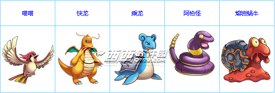 巨龙之翼组合(快龙+乘龙+喵喵+熔岩蜗牛+阿柏怪)