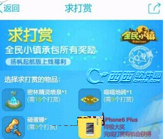 全民小镇求打赏中的iphone6 plus,不管你信不信,小编是信了,因为已经有人获得了,卧槽,真是眼馋,别人卖shen,吃香蕉还来的苹果6就这么轻轻松松搞到手,当然这个版是测试版,不是正品,也就是说这个plus版本是测试版iphone6,不懂得西西上有iphone6 plus的介绍。x8iamian还是重点来说说打赏这个玩法。
