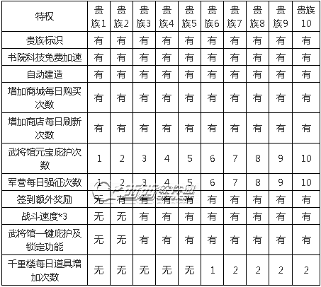 在七雄争霸游戏中,根据玩家充值的多少可以享受不同等级的贵族特权,那么贵族特权具体有哪些功能呢?下面西西就给大家详细介绍一下游戏中不同等级的贵族所能享受的特权!