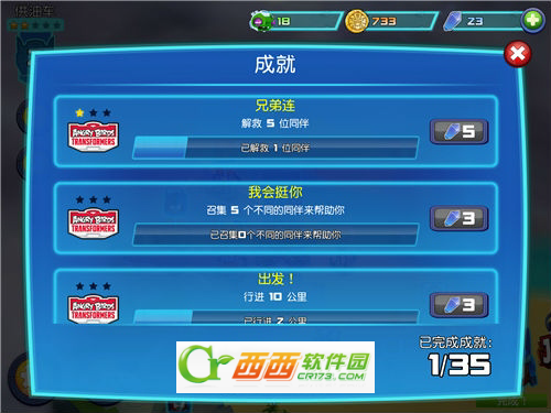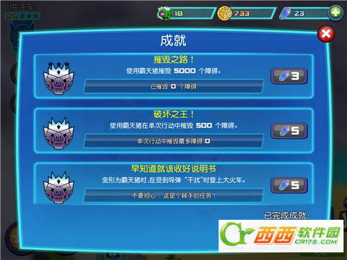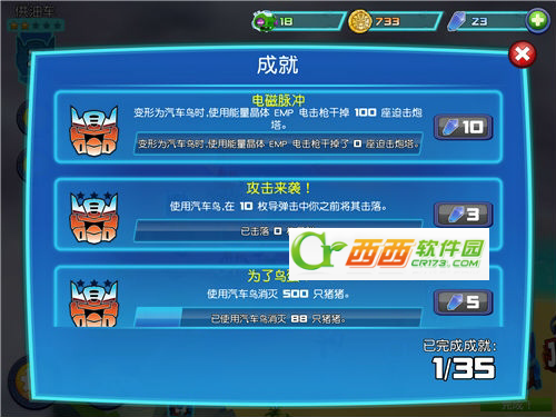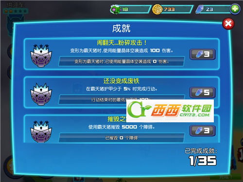 在《愤怒的小鸟:变形金刚》中有许多成就,当我们完成这些成就之后,便可以获得一定的奖励。虽然游戏中标注的有35个成就,但目前并没有完全开放,这里小编就给大家介绍一下这些成就的完成方法与奖励内容吧!