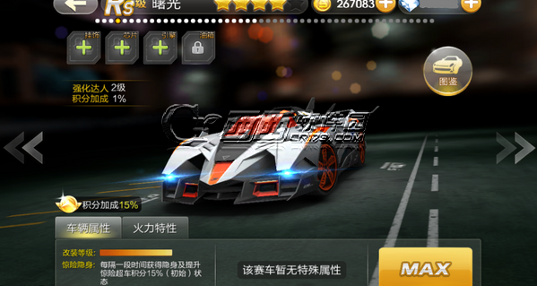 技能:隐身+惊险超车积分加成(目前只有这两项技能)