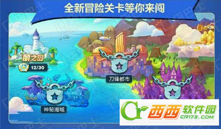 冒险闯关目前有4个大章节,每个大关卡里面有30个小关卡。四个大关卡分为:萌之岛、神秘海域、刀锋都市、魔法城堡。